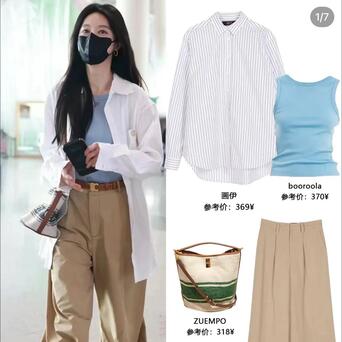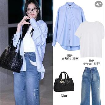 或者是一件淡蓝色的廓形衬衫,通过白色T恤进行提亮,就是很清爽的盐系风格。