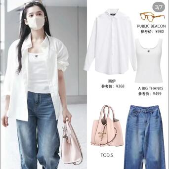 怕出错就从一件经典的白衬衫开始,内搭轻薄大领口背心,下面选择一条牛仔裤即可,简约随性。